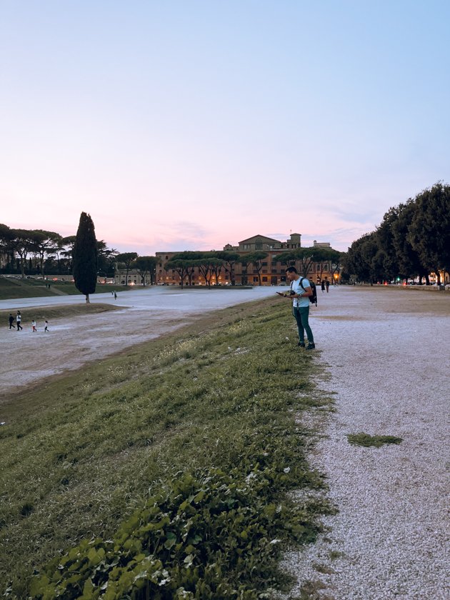 De camino a nuestra siguiente visita, pasamos por el Circo Máximo. Aunque gran parte de su estructura original ha desaparecido, hoy sigue siendo un espacio abierto para eventos y conciertos.