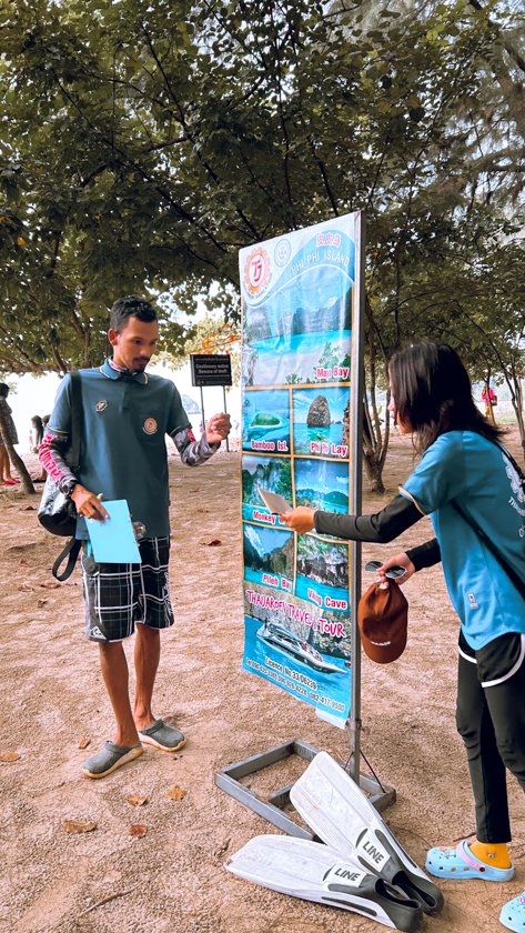 Nosotros contratamos el tour privado en una agencia al lado de nuestro hotel, ya que miramos en varias de la zona y todas nos daban el mismo precio. Nos costó por persona 3.500thb + 300thb tasa Parque Nacional. Nos entraba traslado al muelle, día completo en Long Tail (barco típico Tailandés) y un pequeño plato de arroz y pollo con fruta y algún snack.