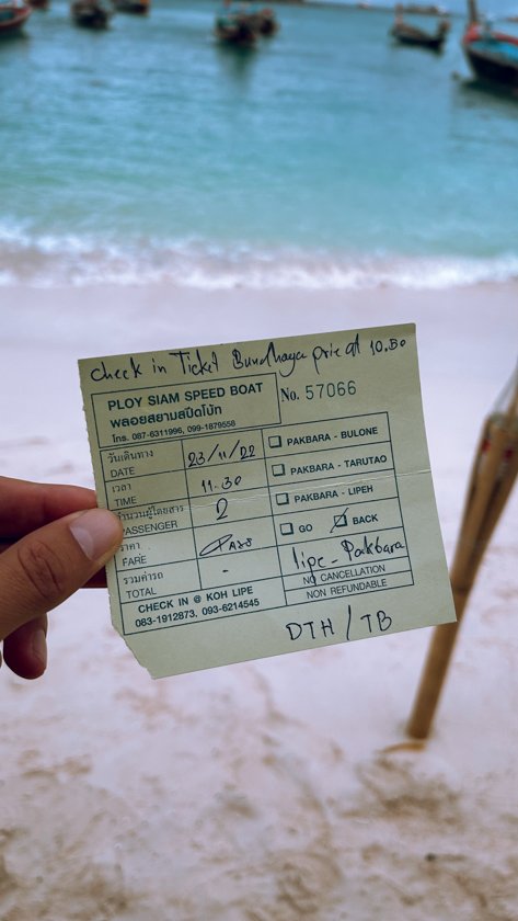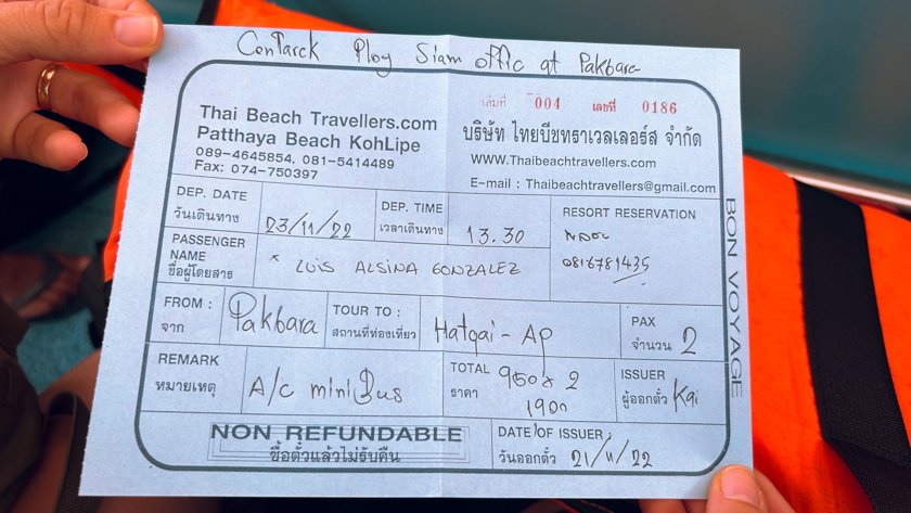 Los billetes del ferry los compramos en una agencia ubicada en la calle principal, donde están todos los restaurantes. Los compramos el día anterior para asegurarnos la plaza. Compramos el billete del ferry + furgoneta desde Koh Lipe al aeropuerto de Hat Yai (11:30 – 15:00 / 1900THB los dos)