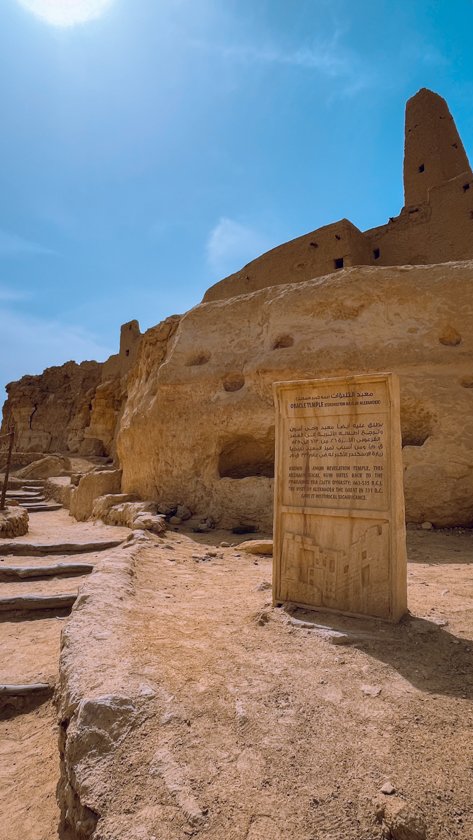 Podrás ver las columnas y fragmentos de relieves que aún se conservan y detalles históricos y religiosos grabados en piedra. Con unas vistas espectaculares del desierto circundante.